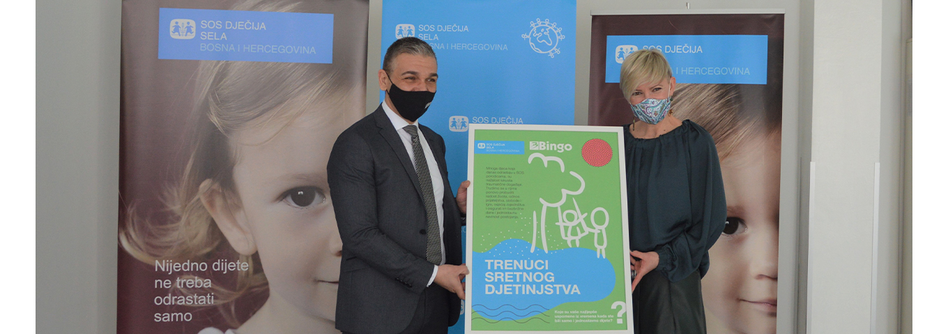 Svečanim uručenjem donacije u iznosu od 40.000 KM ozvaničen je nastavak osmogodišnjeg prijateljstva između kompanije Bingo i SOS Dječijih sela BiH. Kao najbolji prijatelj SOS porodice mame Amire, Bingo će obezbijediti sigurno i zdravo odrastanju djece u porodičnom okruženju, uz roditeljsku ljubav. Dio donacije bit će usmjeren i na podršku socijalno ugroženim porodicama iz Programa jačanja porodica.
